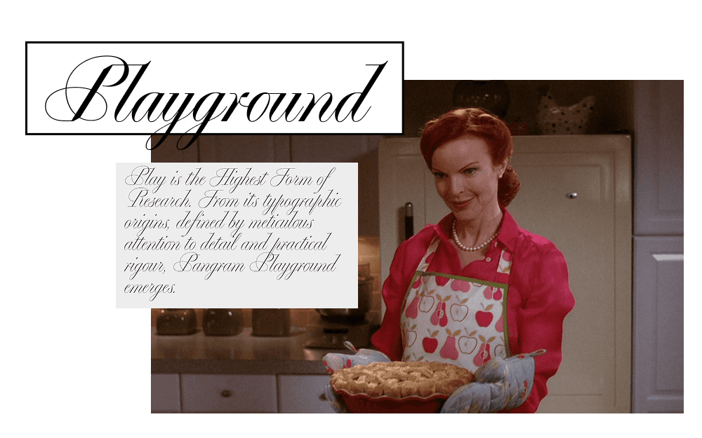 Почему это идеальный мэтч: На первый взгляд Playground кажется лишь «красивым и аккуратным» шрифтом, идеально подходящим для идеальных приглашений на званый ужин. Именно так его часто считывают в контексте каллиграфической эстетики. Однако сами создатели предупреждают: этот шрифт гораздо сложнее, чем кажется. Его геометрия неоднозначна и полна нюансов, которые позволяют ему отлично работать не только в классических открытках, но и в дерзких, современных дизайн-системах.