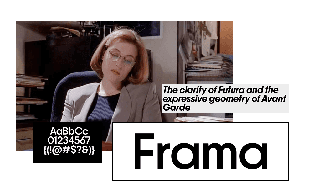 Почему это идеальный мэтч: Frama — это современный геометрический гротеск, который унаследовал архитектуру легендарной Futura. Именно на ней велась вся документация НАСА, фиксировались запуски и проектировались космические корабли. Выбирая Frama для Скалли, мы переносим эту эстетику в её рабочий кабинет: здесь царит порядок, факты и вера в научный метод.