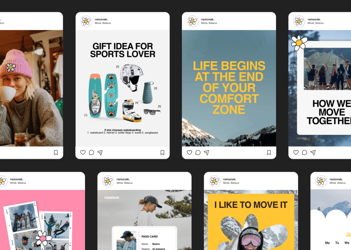 Дизайн, который мы видим каждый день в своих смартфонах. Во второй части Master-курса студенты работали над SMM-дизайном. Они учились делать так, чтобы в соцсетях было не только красиво, но и удобно. Это работы о том, как бренд должен общаться со своей аудиторией в наше время — быстро, понятно и эстетично.