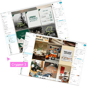 В течение курса мы научимся оформлять проекты на Behance и устроим два просмотра с презентацией учебных работ. Студенты будут учиться защищать свои проекты перед командой и заказчиками.